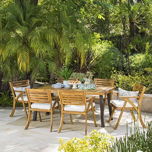Christopher Knight Home Desoto Acacia Wood Patio Dining Set, 7-Pcs Set, Teak Finish With Rustic Metal