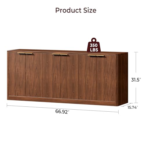 Evermagin 67″ Fluted Walnut Buffet Cabinet Sideboard with Storage, Large Credenza with 6 Doors, Wood Mid Century Modern Sideboard for Kitchen and Living Room (67″ W*31.5″ H*15.7″ D)