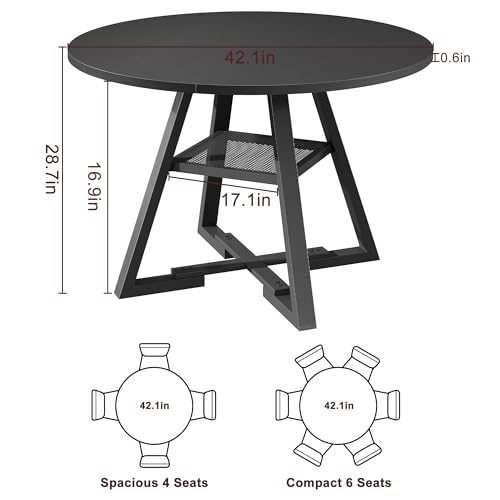IDEAL for FAMILIES of 4-6: (Package Includes one Table) The 42-inch round dining table offers generous space for 4 to 6 people, providing it a space for kitchens and dining rooms. Whether for intimate family meals or lively social gatherings, it is the centerpiece for family gatherings.