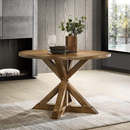 Roundhill Furniture Windvale Cross-Buck Wood 5-Piece Dining Set, Brown