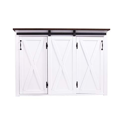 Large stationary kitchen island w/ storage; 2 traditional cabinet doors and sliding barn door on a functional track
