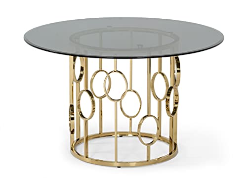 Home » Kitchen & Dining » Limari Home Pascal Collection Modern Style Smoked Tempered Glass Round Dining Table, Champagne Gold