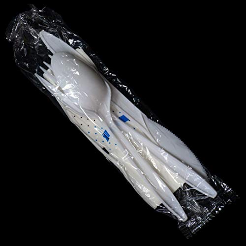 Daxwell Plastic Cutlery Kits, Medium Weight Polypropylene (PP), with Fork, Knife, Teaspoon, Salt, Pepper, Napkin, White, B10001837 (Case of 250), 1-(Pack)