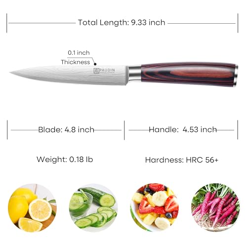 Home » Kitchen Knives & Cutlery Accessories » PAUDIN Utility Knife, 5 Inch Chef Knife, Ultra Sharp High Carbon Stainless Steel, Multipurpose Paring Knife for Fruit and Vegetable Cutting with Wooden Handle, Premium Gift Box