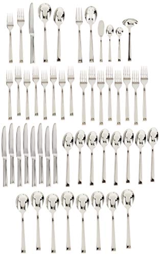 • PREMIUM MATERIAL – High grade 18/10 stainless steel ensures that this 46-piece flatware set will remain a fixture on your table for years to come; Will not tarnish or require re-polishing