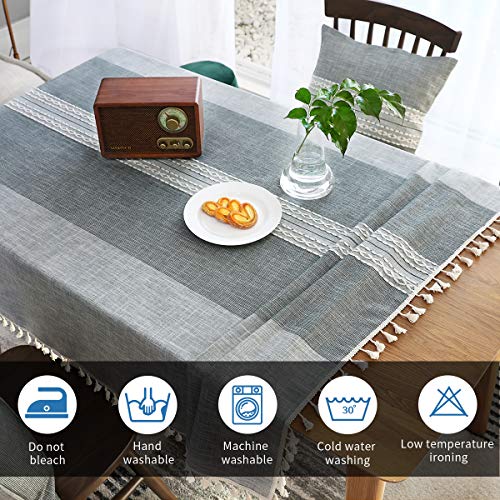 • ?HIGH MATERIAL?ARICHOMY tablecloth combines the comfort of cotton and the firming of hemp with the perfect proportion, which is more wrinkle free and shrink-proof than other materials. And the edges sewn finished with a tassel design adding a delicate and elegant beautiful classic style.