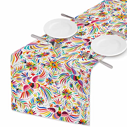 HOSNYE Table Runner Colorful Mexican Birds and Flowers Ornate Ethnic,Cotton Linen Table Runner Decoration for Kitchen Family Dinner Table Holiday Party Farmhouse Style 13 x 72 Inch