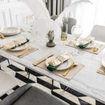 • Choose a tablecloth: Tablecloth size 55×70″ fit for Table size 31×46″-39×54″,4-6 seats. Measure the size of the table, it is recommended to increase the table length by more than 20 inches (10 inches on one side) to get a better drop effect