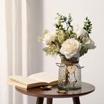 YJ Fake Flowers with Vase, Silk Roses Artificial Flowers in Vase, Faux Flow…