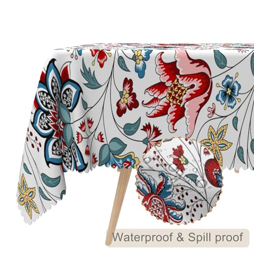 TTQYFNM 54x78inches Bohemian Farmhouse Tablecloth Wildflower Garden Floral Botanical Flower Print Vintage Table Cloth Waterproof and Stain Resistant Table Cover for Dining Room Kitchen Home Decor