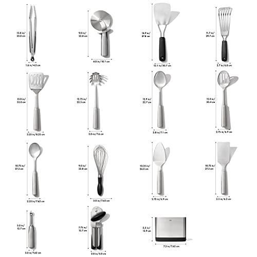 OXO Steel 15 Piece Utensil Set, PC, Stainless Steel