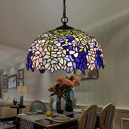 Large Tiffany Pendant Light Wisteria Design Stained Glass Hanging Lamp Handmade 16-Inch Chandeliers for Kitchen Dining Room Foyer Hallway Decorative Lighting