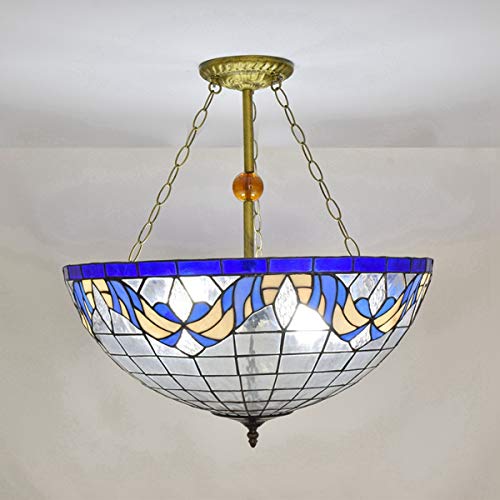 Stained Glass Hanging Lamp 22″ Mediterranean Blue Diamond Pendant Light Stained Glass Hanging Light Dining Room Bar Art Indoor Pendant Lamp