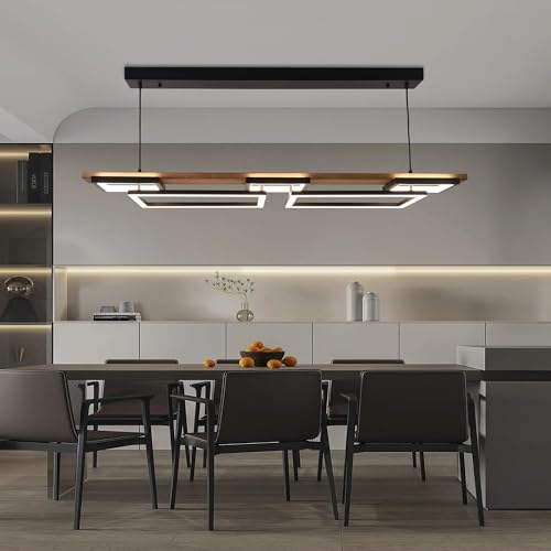 Unique Double-Layer Lighting Gesign : This contemporary LED island light redefines kitchen lighting with its innovative black metal and natural wood composite construction. The two-tier illumination system features three compact square LEDs on the upper level and two primary lighting panels below, creating dimensional lighting through geometric layering. Preserved wood textures add organic warmth to the industrial framework, seamlessly complementing modern, mid-century, industrial, and farmhouse interiors.