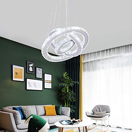 Home » Lamps » Winretro Modern DIY Crystal LED Chandelier Light Fixture 3 Rings Round Pendant Lighting Adjustable Stainless Steel Ceiling Lamp for Living Room Dining Room Bedroom(Cold White)