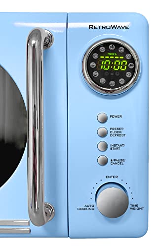 Nostalgia Retro Compact Countertop Microwave Oven 0.7 Cu. Ft. 700-Watts with LED Digital Display, Child Lock, Easy Clean Interior, Blue
