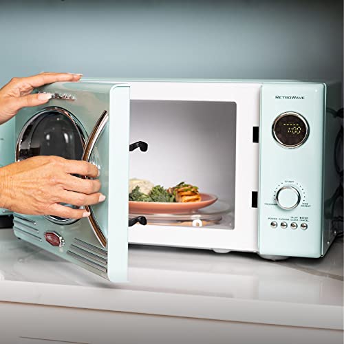 Nostalgia Retro Countertop Microwave Oven, 0.9 Cu. Ft. 800-Watts with LED Digital Display, Child Lock, Easy Clean Interior, Cu.Ft, Aqua