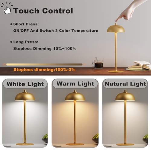 Click for More Images Touch Control Stepless Dimming - Tap the button at the base of the rechargeable table lamp to turn on/off. Long press the button to adjust the brightness from 5% to 100% (with brightness memory function). Suitable for all...
