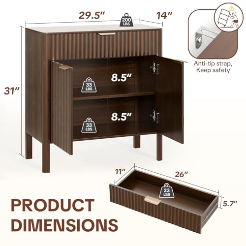 Click for More Images Elegant Fluted Design: This sideboard features a warm wood tone with beautifully grained textures and vertical grooved panels, creating an inviting atmosphere.The smooth metal handles add a touch of sophistication.It...