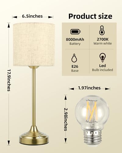 Click for More Images For best performance, fully charge the lamp before first use and long-press the touch switch to reach maximum brightness. Please note that the lamp stands 17.9 inches tall and is intended for warm, ambient lighting, not...