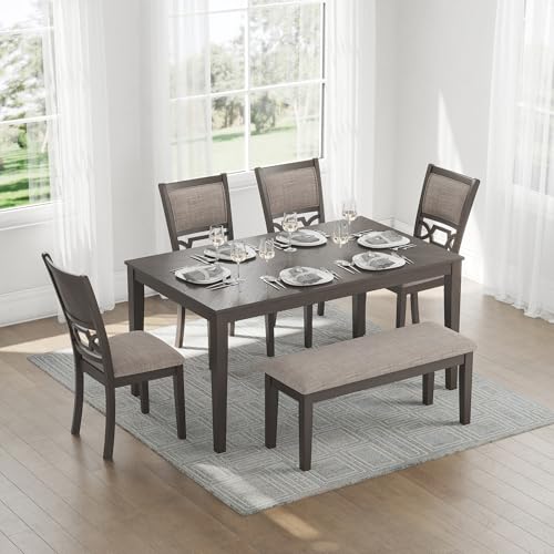 Click for More Images DINING TABLE SET: Embrace the beauty of transitional style. From dinner to working from home, this standard height dining table, bench & chairs are well-suited to a dining room or kitchen nookBEAUTIFULLY MADE: Table made...