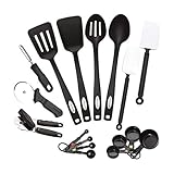 Click for More Images THE 17-PIECE SET INCLUDES: one (1) of each: slotted spoon, basting spoon, turner, slotted turner, spoon/spatula, spatula/scraper, peeler, pizza cutter, can opener, 4 piece measuring cup set and a 4 piece measuring spoon...
