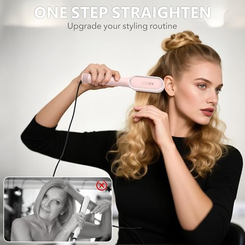 Click for More Images 30s Flash Heating: Engineered with advanced PTC ceramic heating elements, this hair straightener brush reaches 330°F in just 30 seconds. No more waiting for heat-up; perfect for rushed mornings. Get a great look with ABVOT...
