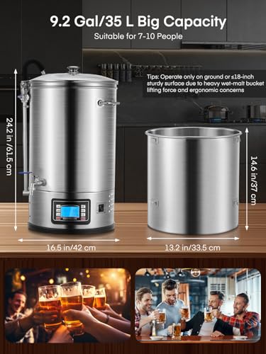 Click for More Images [All-in-One Brewing System?] This 9.2-gallon (35L) stainless steel electric beer brewing system eliminates complex setups for homebrewers. As a complete beer brewing kit, its 0.05" thick 304-grade interior handles grains...