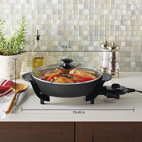 Click for More Images Large multi-functional electric skilletCeramic nonstick coated 2-1/4” deep panAdjustable temperature settings from Keep Warm (176°F / 80°C) to 430°F (220°C)Magnetic power cordPFAS-free & BPA-free (all areas that come...