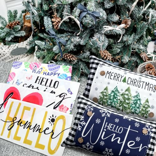 Click for More Images What You'll Receive: our rectangle canvas throw pillow covers set includes a pillow and 12 panels; The winter pillowcase is ideally sized 12 x 20 in, and the panels 7.9 x 14.7 in, offering a versatile way to update your...