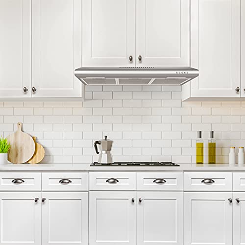 Stainless steel vent hood for kitchen with aluminum mesh filters, 2 led lights offer enough brightness to meet your cooking need.