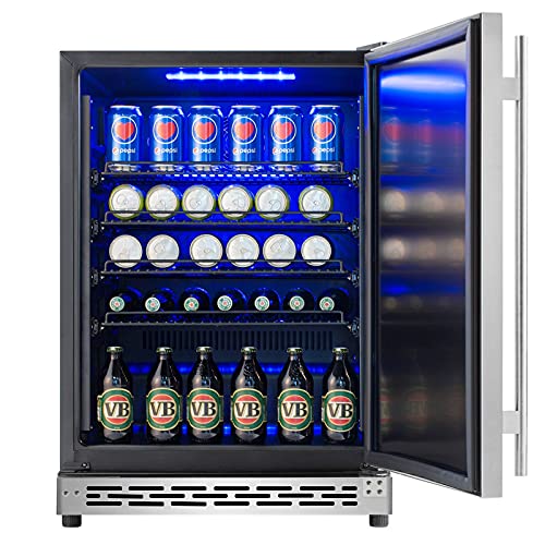 24 Inch Outdoor/Indoor Under Counter Beverage Refrigerator and Cooler, 5.8 Cu. Ft. Stainless Steel Fridge for Beer Drink, Freestanding or Built in