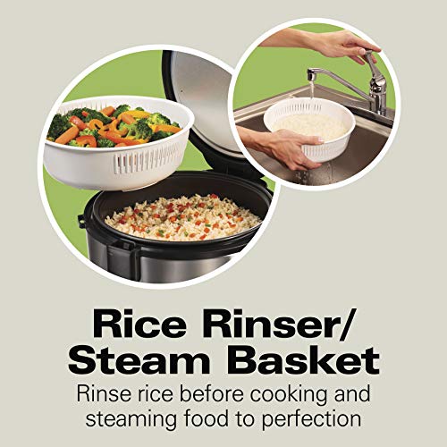Hamilton Beach Digital Programmable Rice Cooker & Food Steamer, 20 Cups Cooked (10 Uncooked), With Steam & Rinse Basket, Stainless Steel (37543)