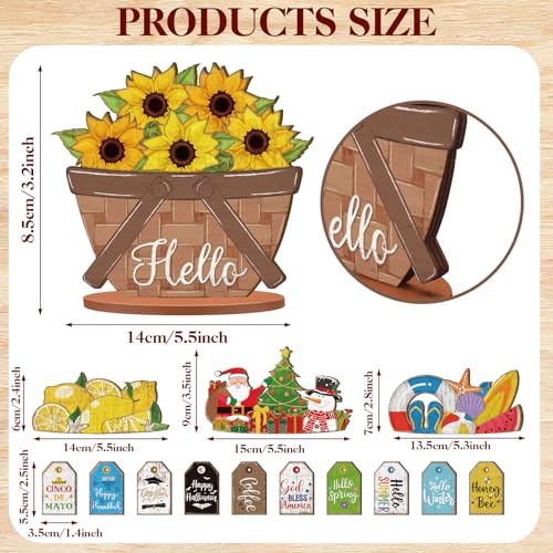 • Widely Applicable: the wooden interchangeable basket seasonal sign is easy to use and decorate, which integrates a rustic and farmhouse style, adding a charming touch to your home and office decor, you can place it on the shelf, countertop, desk, mantel or many other places