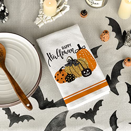 Artoid Mode Jack-O-Lantern Pumpkins Happy Halloween Pumpkins Kitchen Towels Dish Towels, 18×26 Inch Seasonal Decor Hand Towels Set of 2
