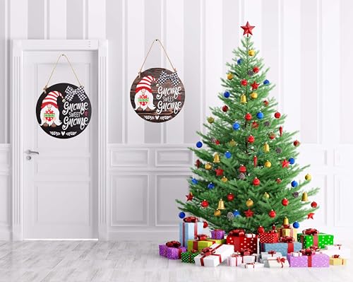 CYNOSA Interchangeable Seasonal Gnome Sweet Gnome Welcome Sign Front Door Decor Wooden Gnome Door Hanger, 12 Inches Farmhouse Wall Sign Gnome Decor (Brown)