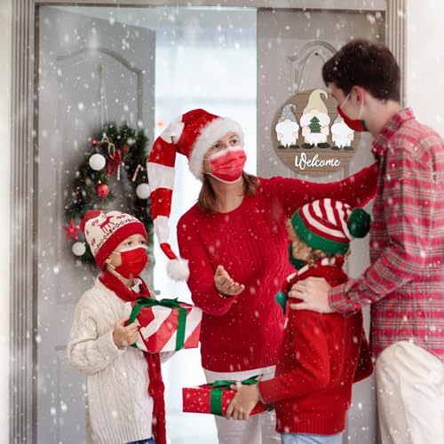 Interchangeable Seasonal Gnome Welcome Sign for Front Door Decor Rustic Wooden Welcome Sign with 10 Changeable holiday icons,12 Inches Modern Farmhouse Wall Home Sign for Holiday Christmas