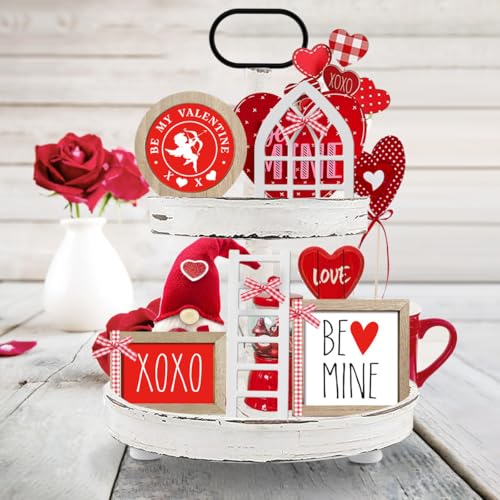 Nuvagiki Valentine’s Day Tiered Tray Decor, Valentine’s Day Decorations for Home Indoor, Interchangeable Year Round Seasonal Decorations Wooden Frames + Mini Arch + Ladder Set, No Tray, Turkey Decor