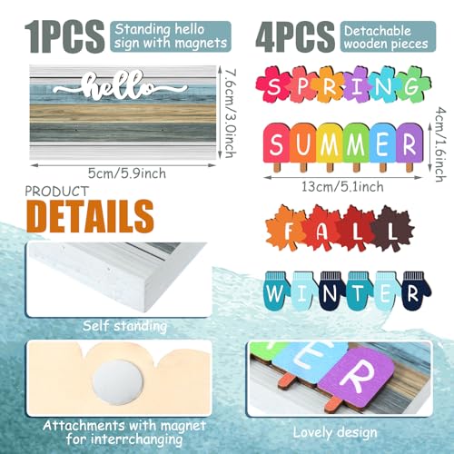 • Lovely and Interesting Appearance: you will receive Seasonal table block with printed [hello] text and 4 interchangeable seasonal welcome signs with suction stones, easy to replace, so you can choose accessories according to the seasons, interesting and practical