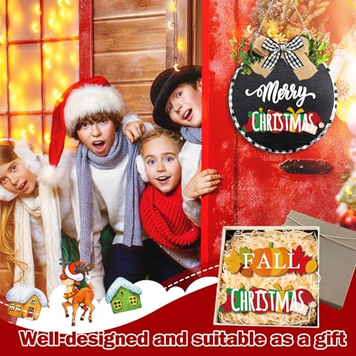 Yuntau 20 Pcs Seasonal Front Door Sign for All Seasons Hanging Interchangeable Welcome Sign, Rustic Round Wood Wreaths Wall Hanging Outdoor Indoor Farmhouse Front Door Home Decor for Christmas(Black)