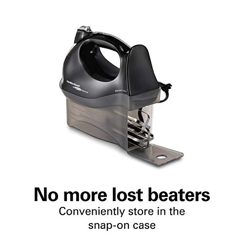 Hamilton Beach Power Deluxe 6-Speed Electric Hand Mixer with Snap-On Storage Case, QuickBurst, Beaters, Whisk, Powerful 250 Watt Motor, Bowl Rest, Black (62692)