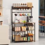 Kalrin Large Bakers Rack with Power Outlets, 15 Hooks Coffee Bar with 3 Wir…