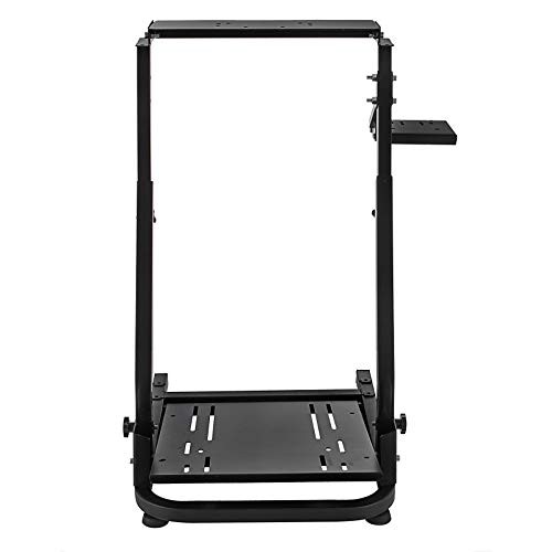 Racing Wheel Stand base size: 22.5″x19.5″.Height adjustment of wheel stand: 22″-30″.Material: Steel