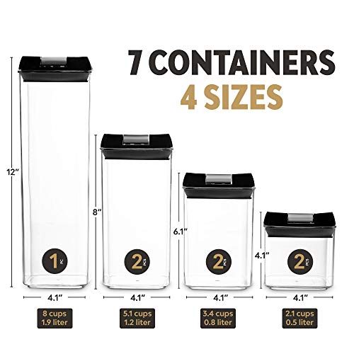 7 Pc Airtight Food Storage Container Set – Kitchen & Pantry Organization Containers – Labels & Chalk Marker – BPA Free Clear Plastic Kitchen and Pantry Organization Containers