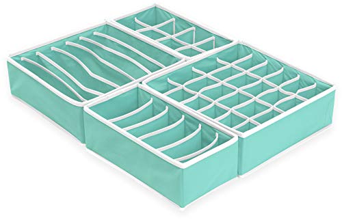 Simple Houseware Closet Underwear Organizer Drawer Divider 4 Set, Turquoise