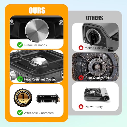Ultra-Portable & Space-Saving-Perfect for camping, hiking, or tailgating, this stove folds down to a compact size and light weighs.The built-in handle makes it easy to carry and store, so you can take it anywhere with ease.