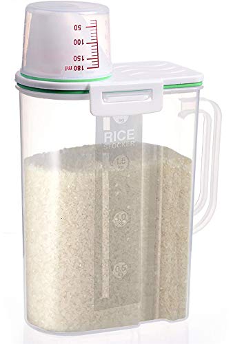 1.The cereal storage containers are designed to be transparent bodies, so that you can see what was inside without any notes. 2.The rice container bin has 3 colors of the cover to be choosed. It is easy for you to make neat pantry organization....