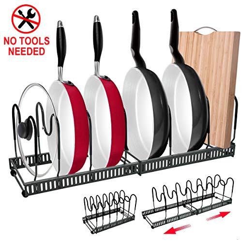 Expandable Pan rack ?[ Expandable pan rack ]: Don't hesitate to buy this pan rack organizer. It will be much convenient for you to store all your frying pans, sauce pans, bakeware, pots, pot lids or any other cookware. Make your kitchen nice and...