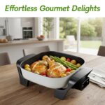 ETL Listed 1400 watt large electric skillet is ideal for home kitchen use. Cool-touch knobs and handles make this cooking essential a thoughtful housewarming. Manufacturer 2 year warranty included. Multi-functional: Fry, sauté, braise, brown and...