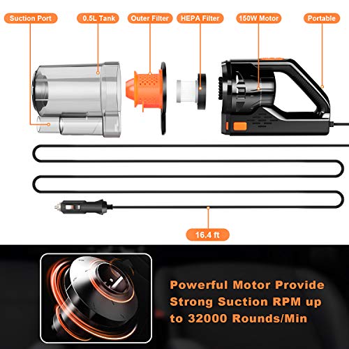 Click for More Images A Professional Deep Cleaning Vehicle Tool. Use the car vacuum to save your time and money to get professional cleaning results every time.Strong Suction. 150W powerful motor, RPM up to 32000 Rounds/Min. The car...